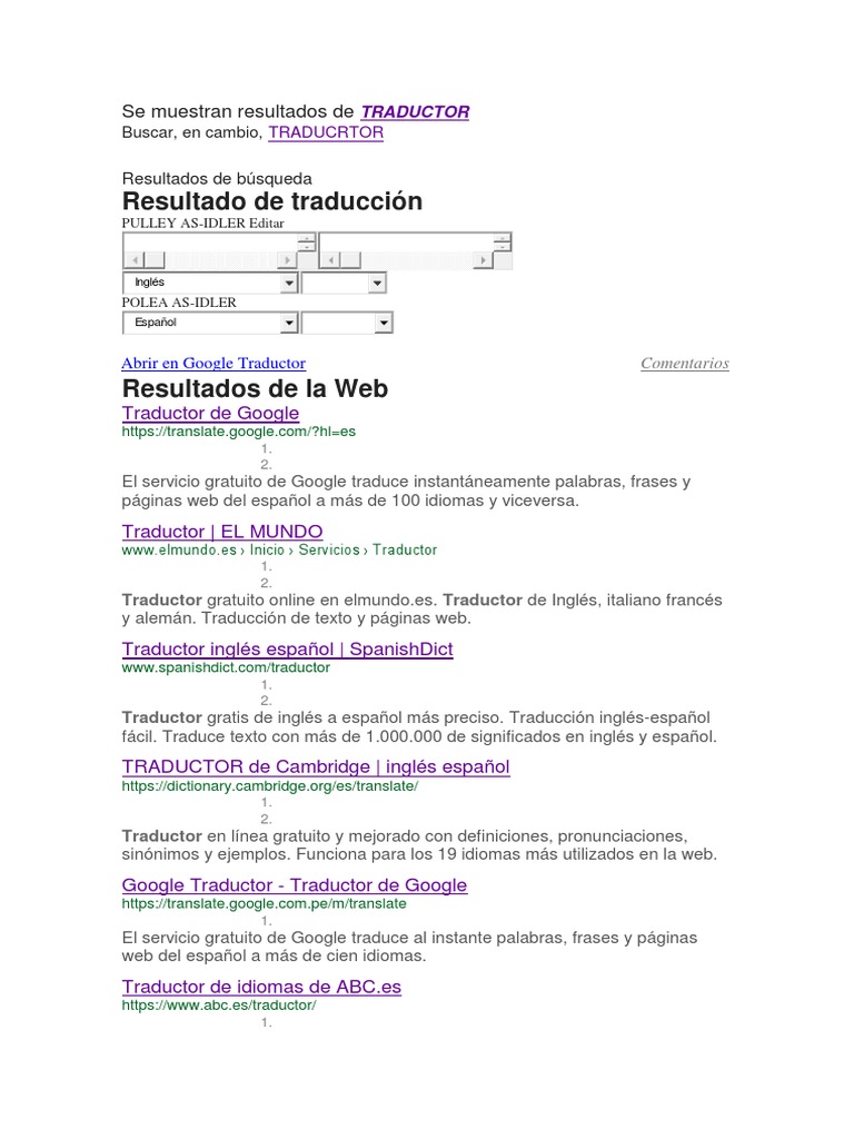Más información en el diccionario inglés español. Traductor en línea gratuito reforzado con definiciones pronunciaciones sinónimos ejemplos del diccionario y el apoyo de los 19 idiomas más utilizados en la web. Más información en el diccionario inglés español. Inglés español francés alemán italiano y portugués este traductor destaca por su calidad gramatical.